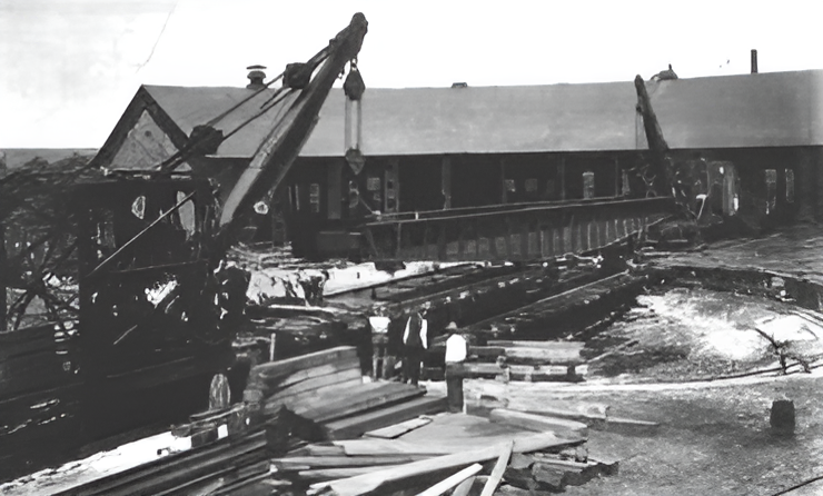 Manilla's railway turntable being built, circa 1900 (enhanced photo)